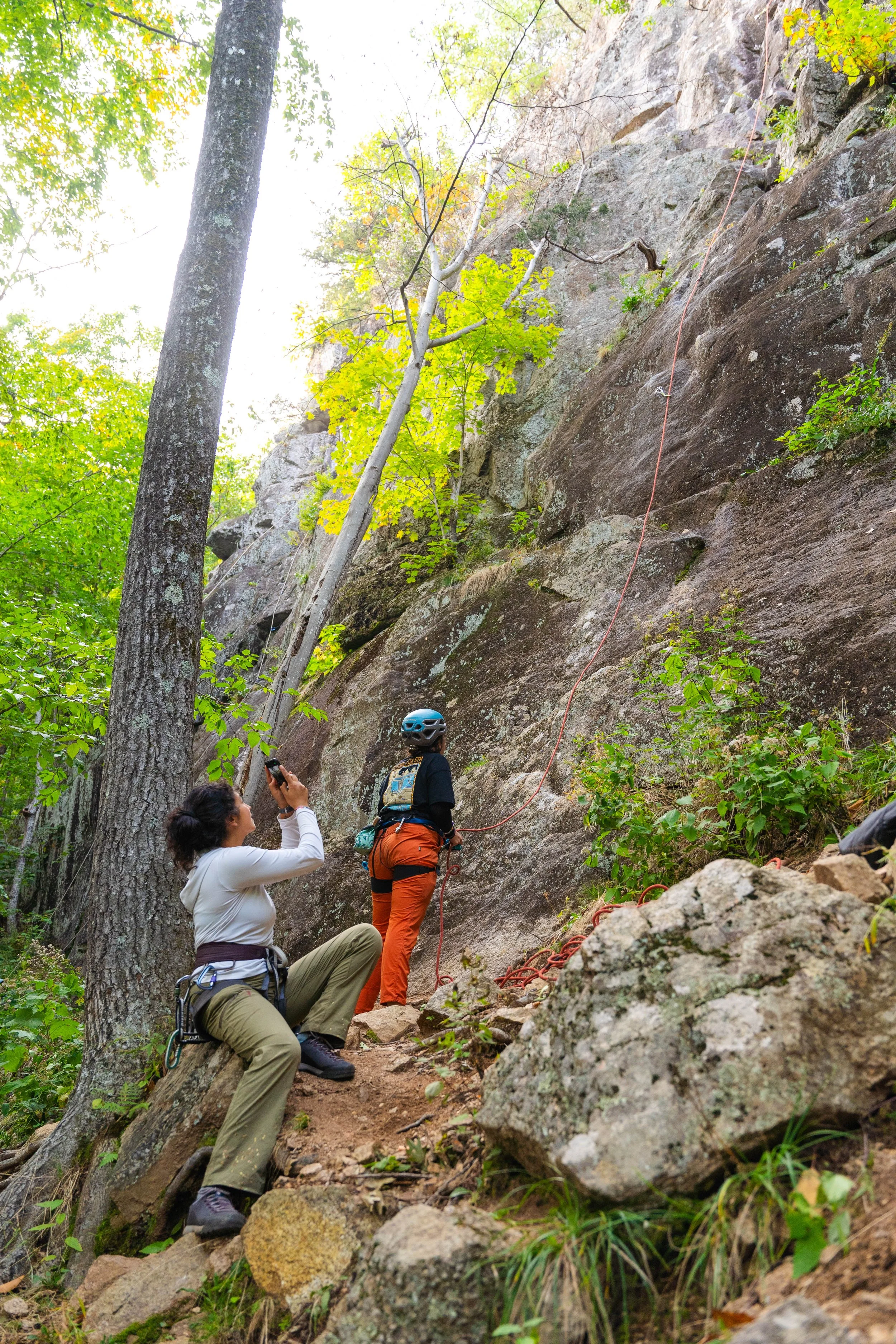 The following day, I joined SendHers to Humphrey's Ledge where I got to climb with such a sweet group of people and worked through the parts of me that were nervous to climb with and in front of people I didn’t know.. My last climb of the day, I got to learn how to clean the anchor from Valentina, who was patient throughout the entire process.There’s something different and almost magical about learning from women/non-binary people of color in the climbing space that made it feel much more attainable than it had in the past. Valentina demystifying cleaning anchors was such a key moment for me during TradFest because it clicked in my brain that I can do this! I can clean anchors, I can set up top ropes! I can sport and trad climb! I can rappel! All those things had greatly intimidated me, but I feel ready and excited to lean into the discomfort and learn.