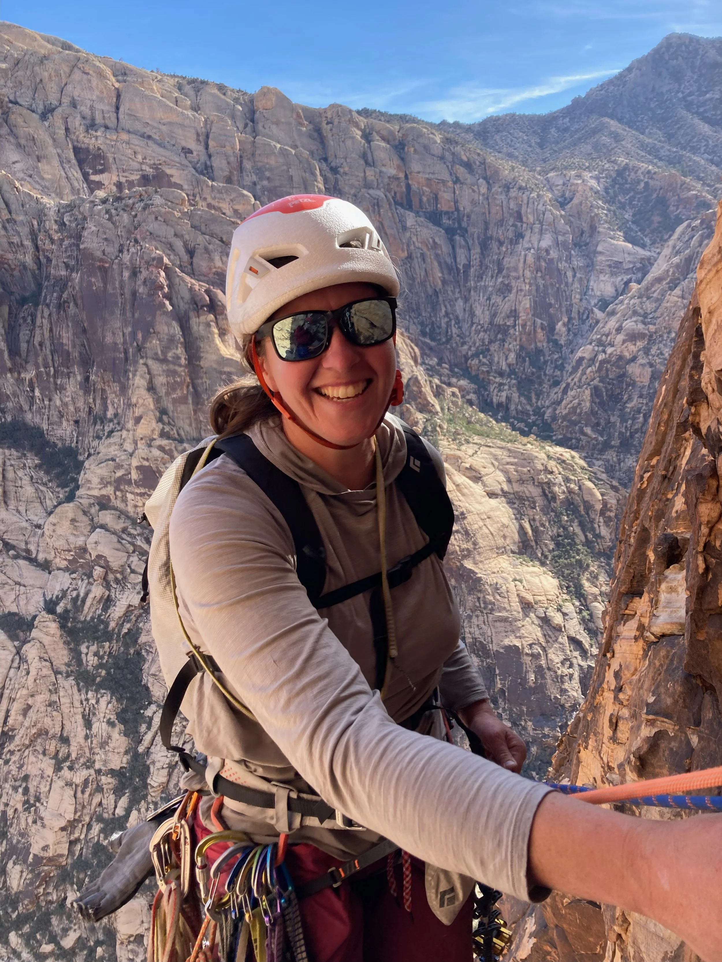 My name is Amity Warme. I am a sports dietitian and chronically over-stoked rock climber, perpetually pursuing the next adventure. I find climbing compelling because it provides the opportunity for me to push my limits, physically and mentally, while exploring incredible landscapes and connecting with others in the climbing community. I live in a van and spend most of the year traveling to various climbing destinations, seeking out adventures big and small. My secret climbing superpower is trying REALLY hard - I don’t give up! I love digging deep to accomplish a goal and enjoy empowering others to do the same. I enjoy most all disciplines of climbing but feel especially drawn to big wall climbing because it requires a full repertoire of skills in order to pull off a successful ascent! I am passionate about both pursuing my potential as an athlete and helping others use nutrition to maximize both performance and long-term health. Feel free to say hi if you ever see me around!!